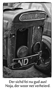 die vielen amüsanten Postkarten, die der Neustädter Fotograf Andreas Riedel und sein Texter-Freund, der bekannte Aischgründer Dialektschriftsteller Helmut Haberkamm, seit einigen Jahren mit Erfolg und großem Zuspruch unters Volk bringen, in einem handlichen, heiteren, hinter-sinnigen Buch gesammelt erscheinen würden. Nun ist es soweit. „Siggsdersla“ heißt es treffend. Was man sieht, lässt